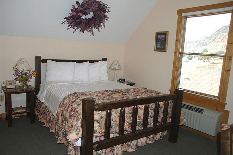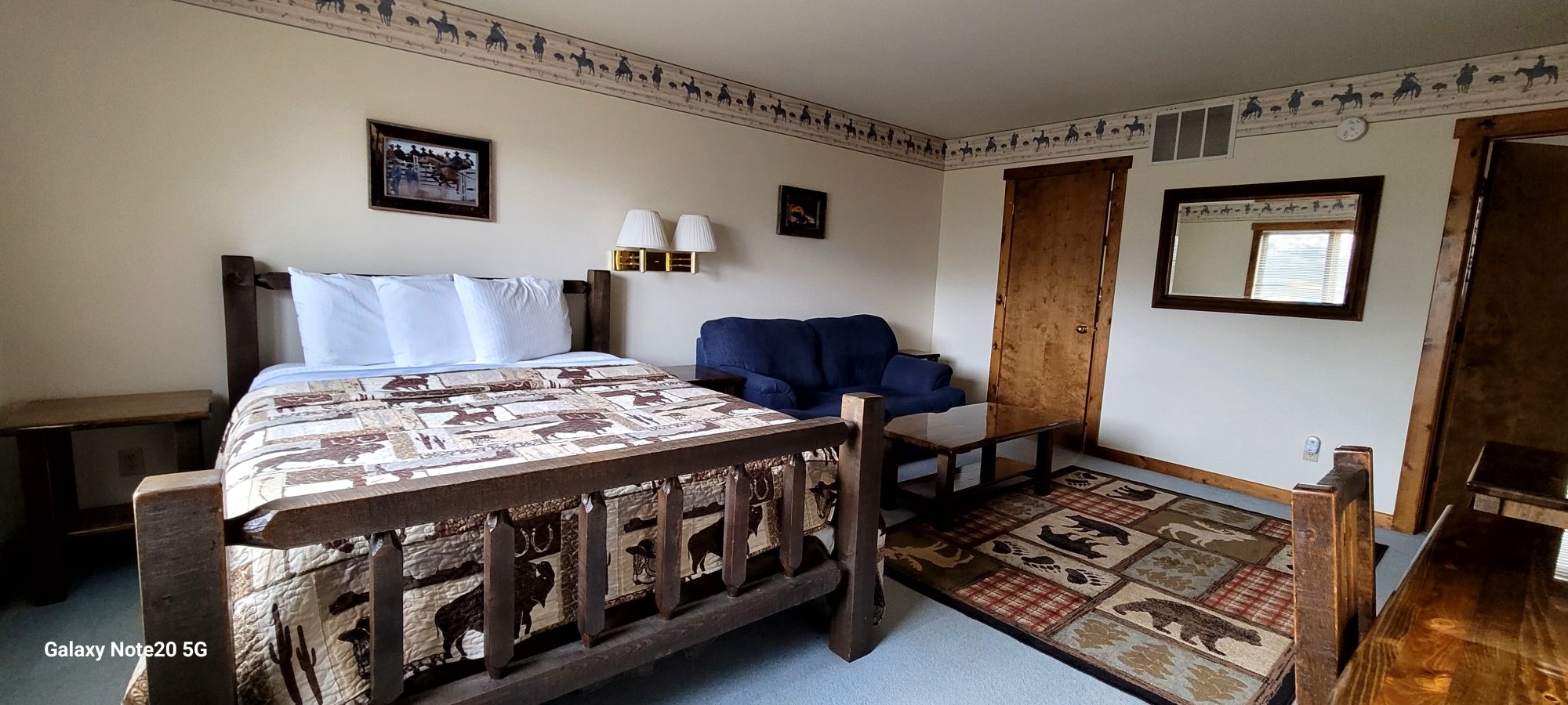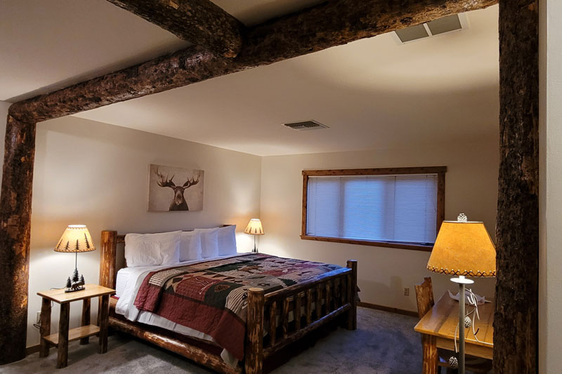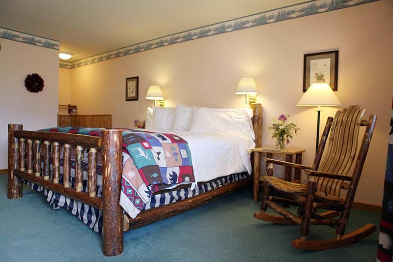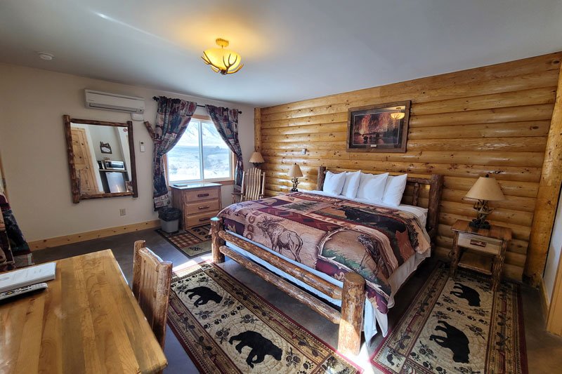 room treats guests to a taste of the west. Enjoy the feel of log-home living with a private kitchenette and one comfortable king bed, with log furniture, for maximum of 2 guests.