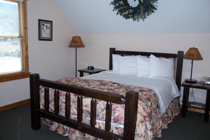 Northern Lights. Located on the second floor (stairs, no elevator), this cozy room features one queen bed with log furniture, for maximum occupancy of 2 guests.